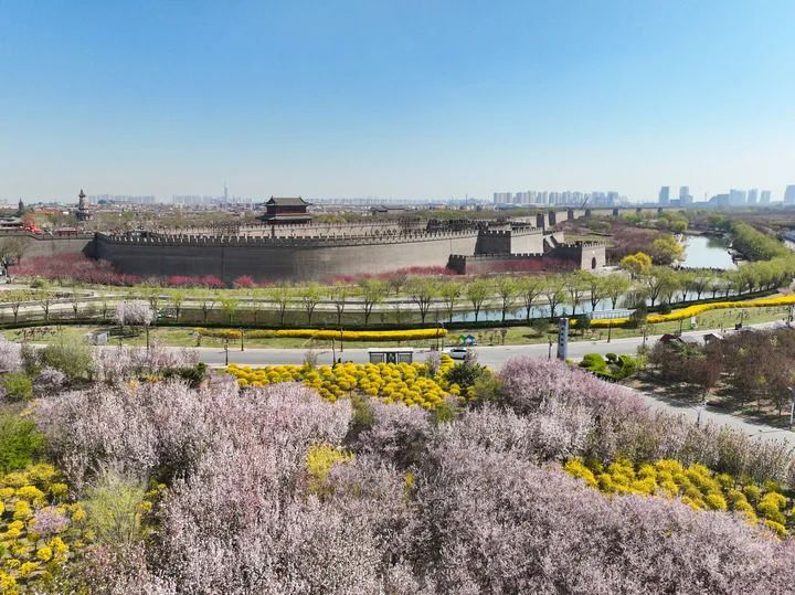 河北省正定古城南城门春色(2025年3月31日摄,无人机照片)。新华社发(梁子栋摄)