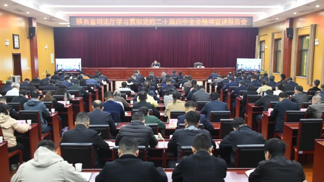 11月7日,陕西省司法厅举办学习贯彻党的二十届四中全会精神宣讲报告会,厅党组书记、厅长杨政国作宣讲报告,厅党组成员、政治(警务)部主任唐锡明主持报告会。