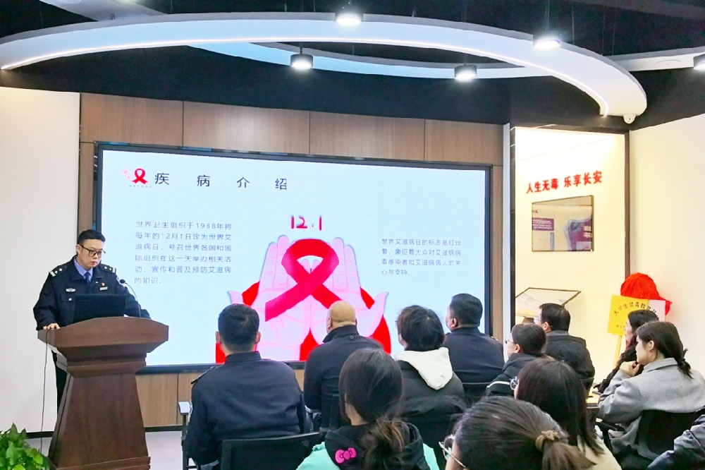 陕西省长安强制隔离戒毒所紧紧围绕“社会共治,终结艾滋,共享健康”主题,组织开展禁毒防艾系列宣传教育活动,切实打好“禁毒”主动仗,筑牢“无艾”防护墙。